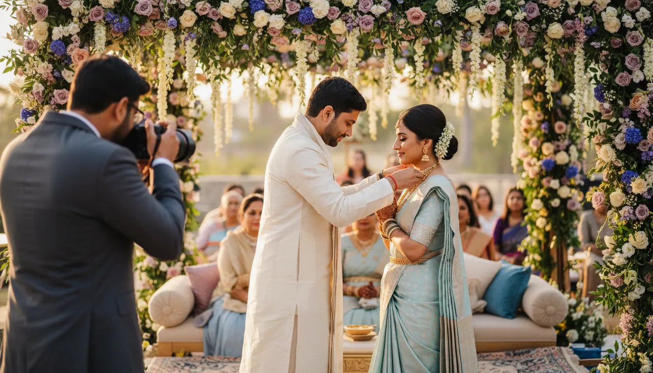 Que ce soit le moment précis où le marié noue le Thali, l'échange des feuilles de bétel, ou les pas de danse rythmés, le photographe doit anticiper chaque action. De plus, il saura parfaitement gérer la luminosité pour mettre en valeur les riches couleurs des saris et des bijoux.